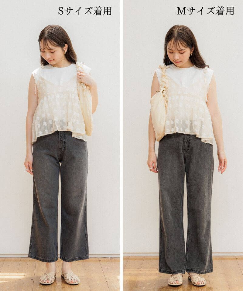 Sサイズは低身長さんもフラットシューズで着用していただける丈感となっております!