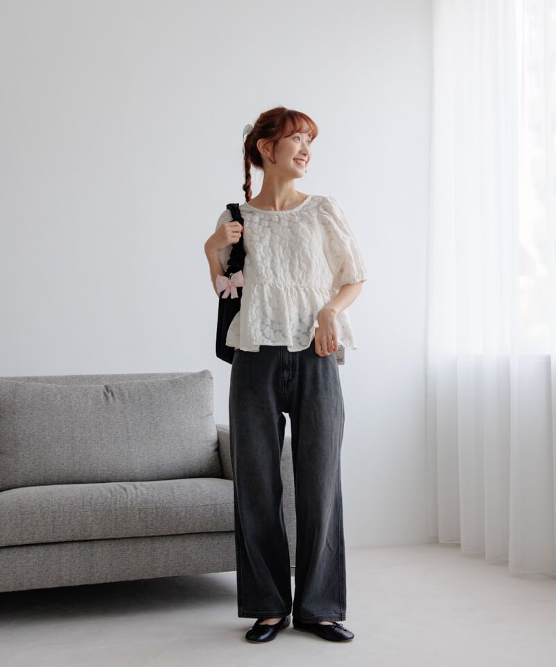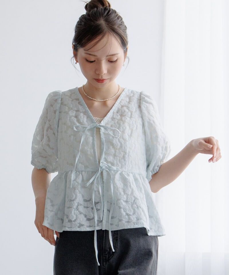 ポコポコとしたジャカード素材のお花柄が特別感たっぷりなブラウス♡